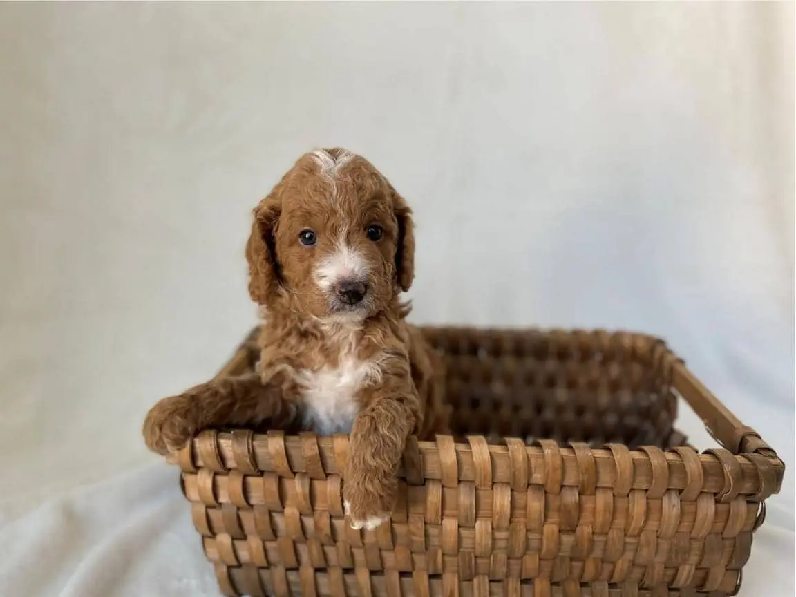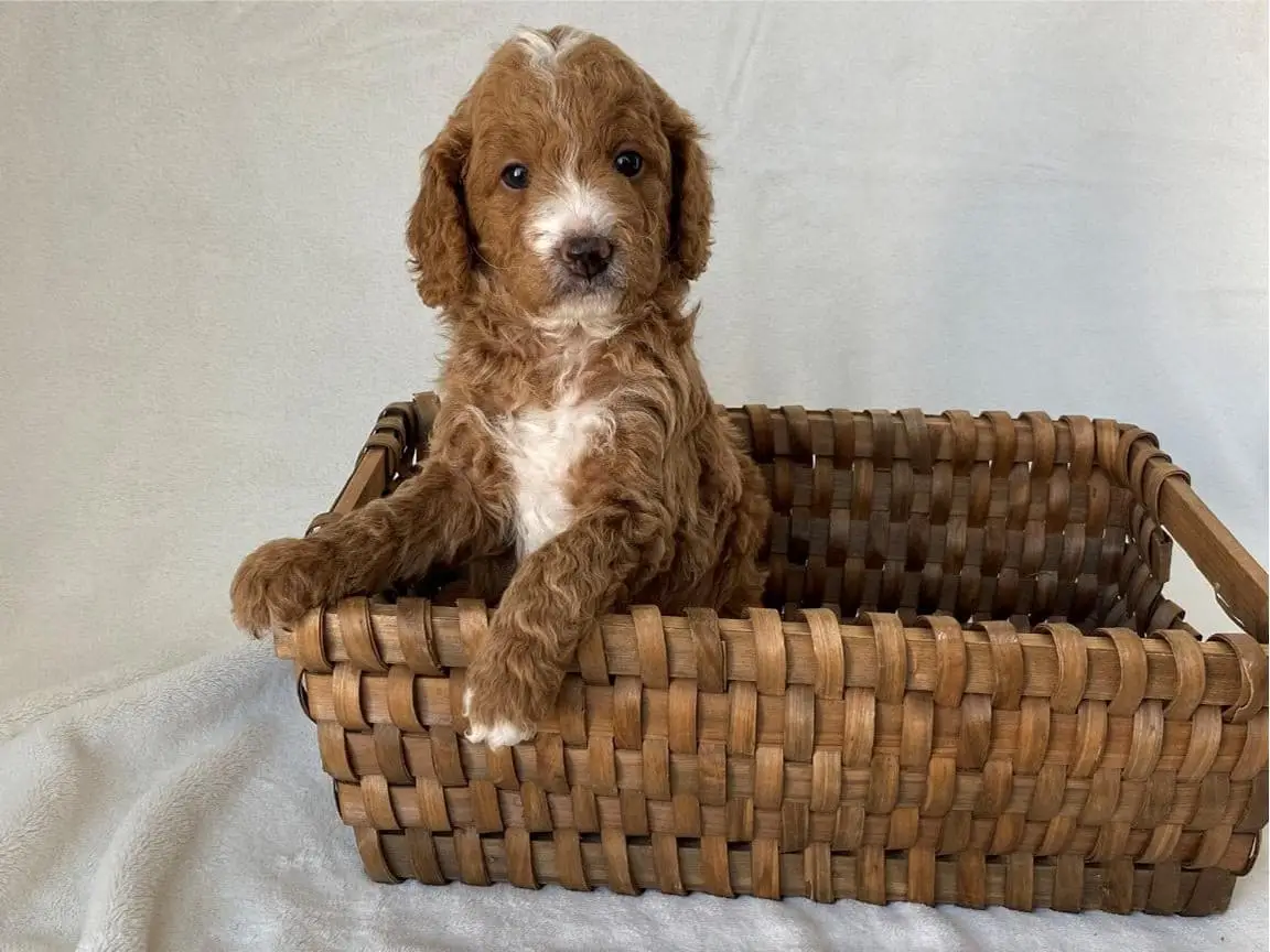 GOLDENDOODLE MINI – Meet Fredrich from the Little Women litter, Born Jan 22, 2025. He should weigh approx. 15- 20lbs.