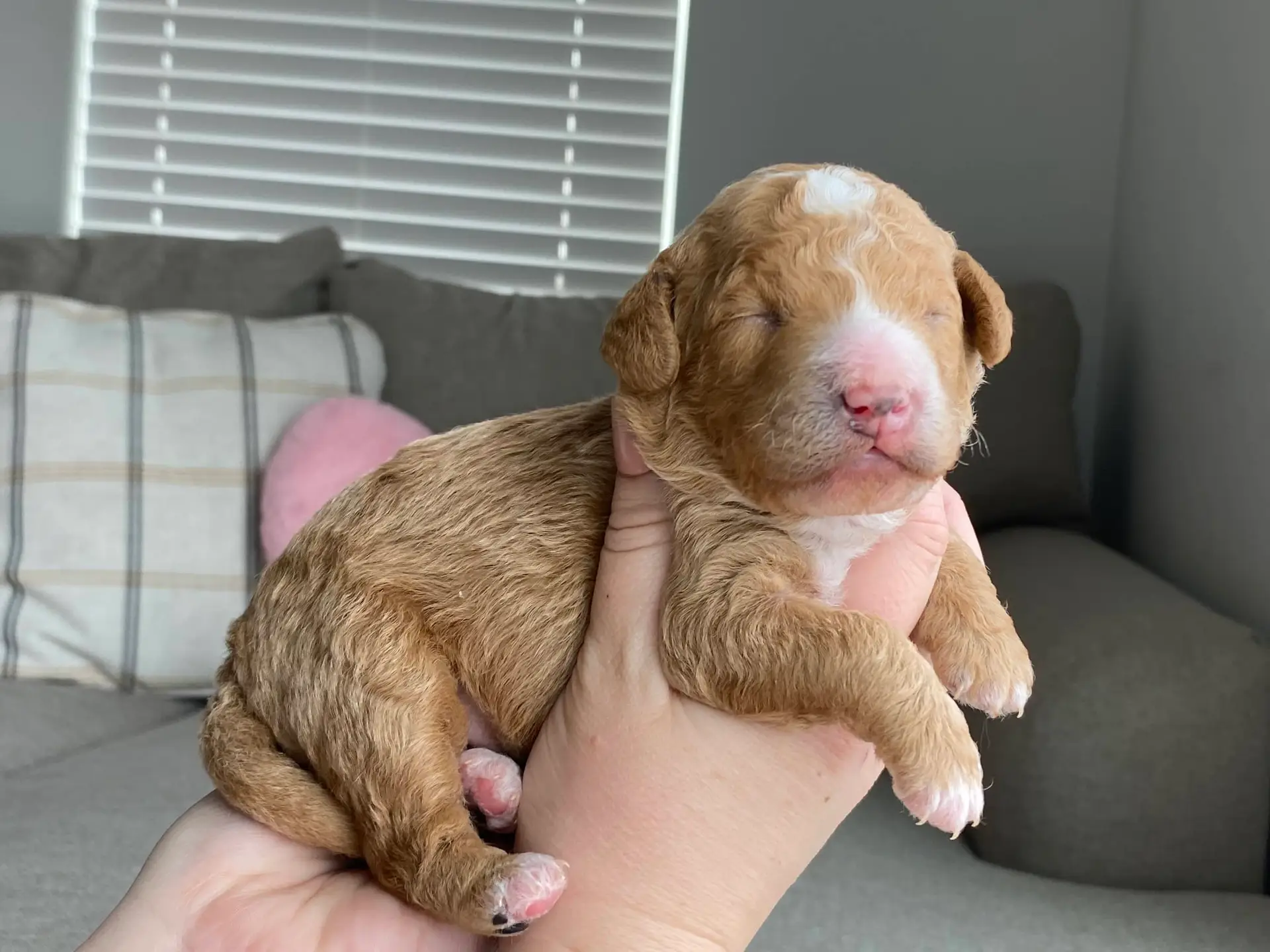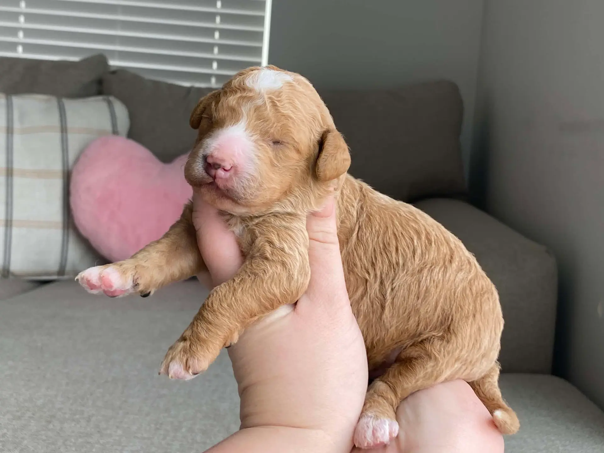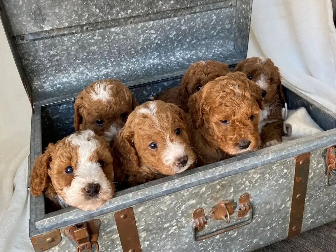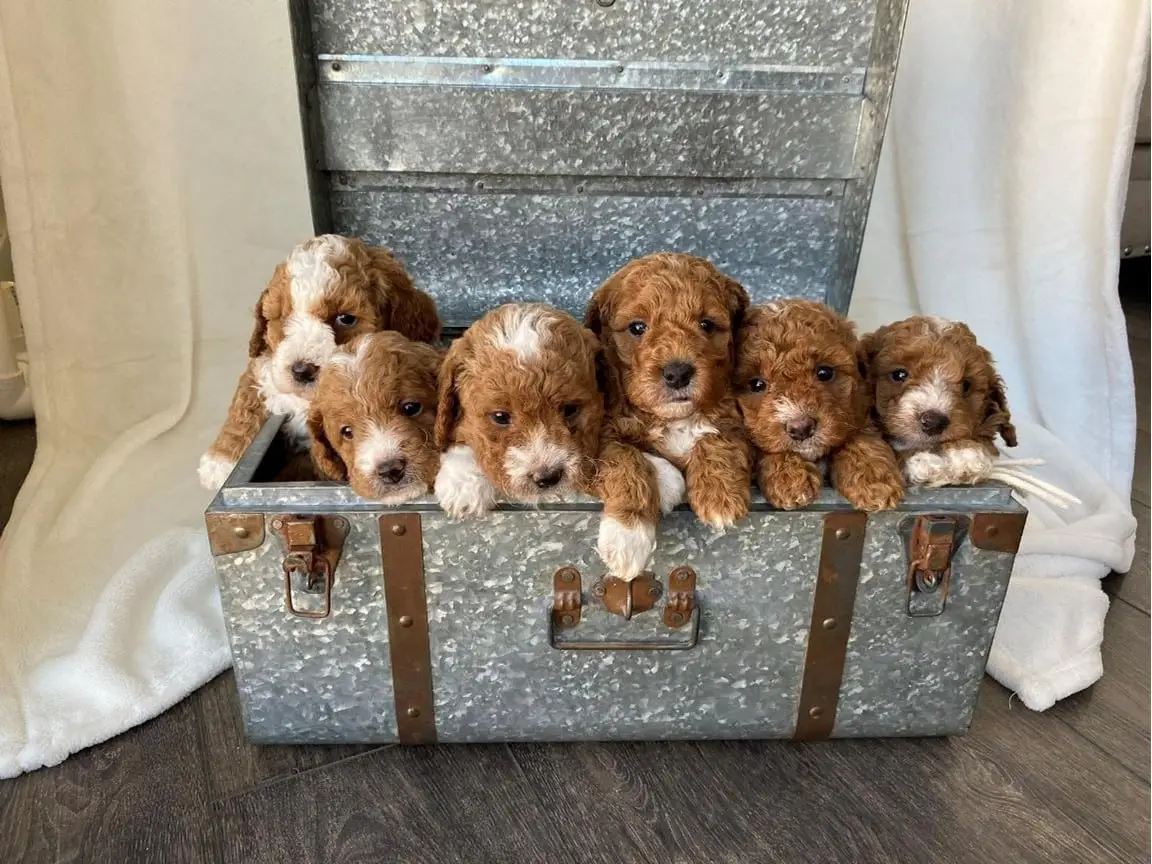 GOLDENDOODLE Petite – Meet Foxy from the Libby & Theo’s Petite Goldendoodle litter, Born Feb.23 2025. She should weigh approx. 10-15lbs.